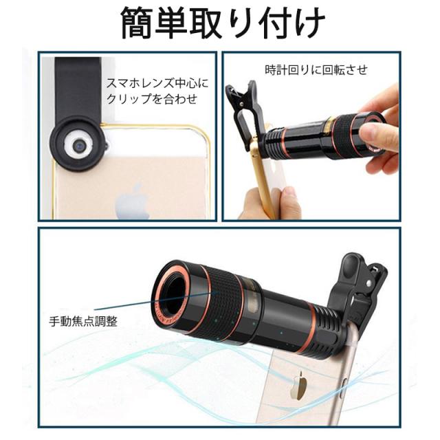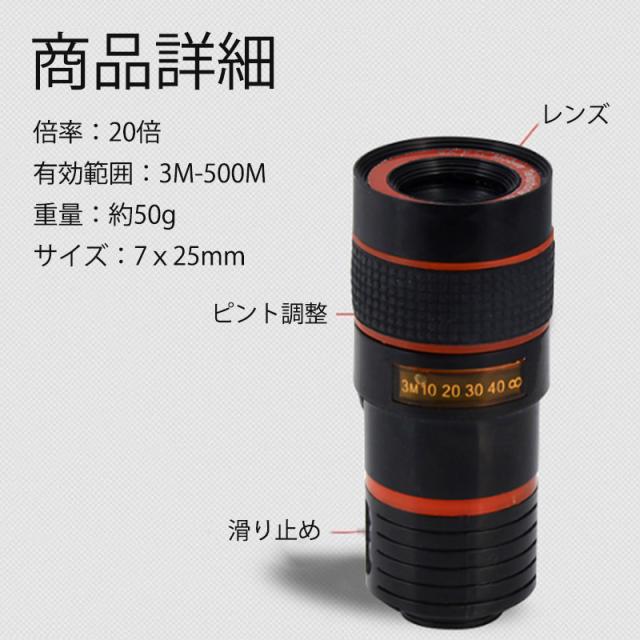 【キーワード】スマホ用レンズ 望遠レンズ ズームレンズ 単品 20倍 クリップ式 シンプル 持ち運び コンパクト ライブ コンサート 運動会 写真撮影 旅行 演奏会 スマホ用交換レンズ 望遠20倍