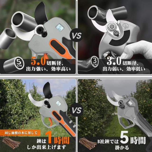 電動バサミ 業界初の5cm電動剪定ばさみ 強いパワー コードレス充電式剪定バサミ 2段階開き角度調節可 マキタ使える 大容量バッテリー付き 切断回数と残量表示