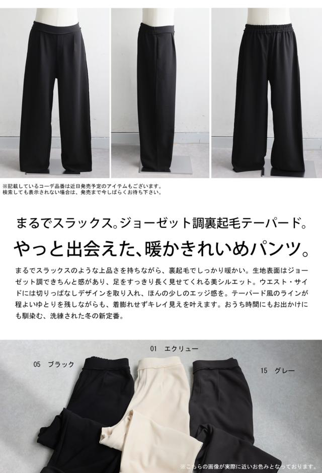 寒い季節もスマートに決まる、裏起毛ジョーゼットのテーパードパンツが登場。