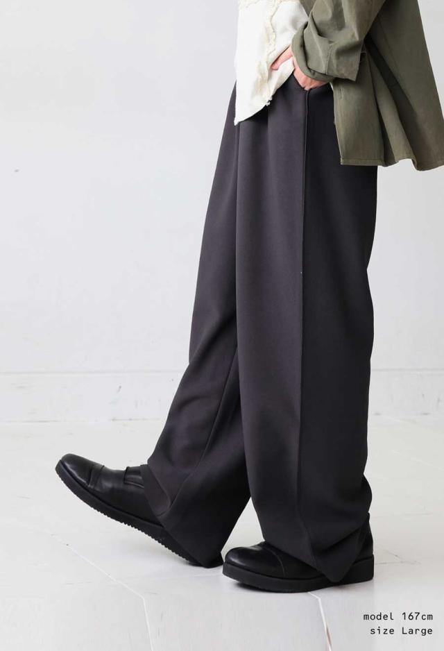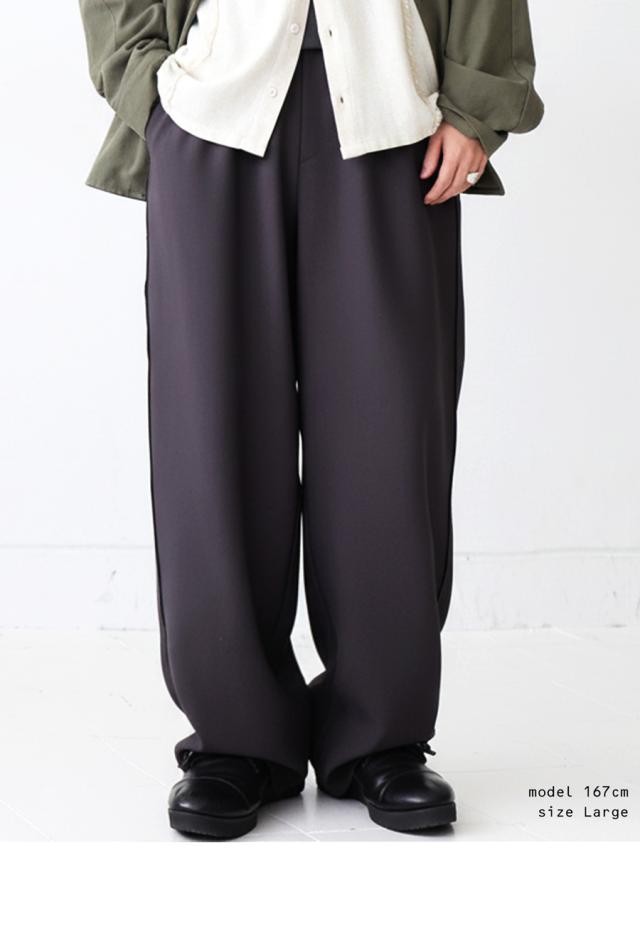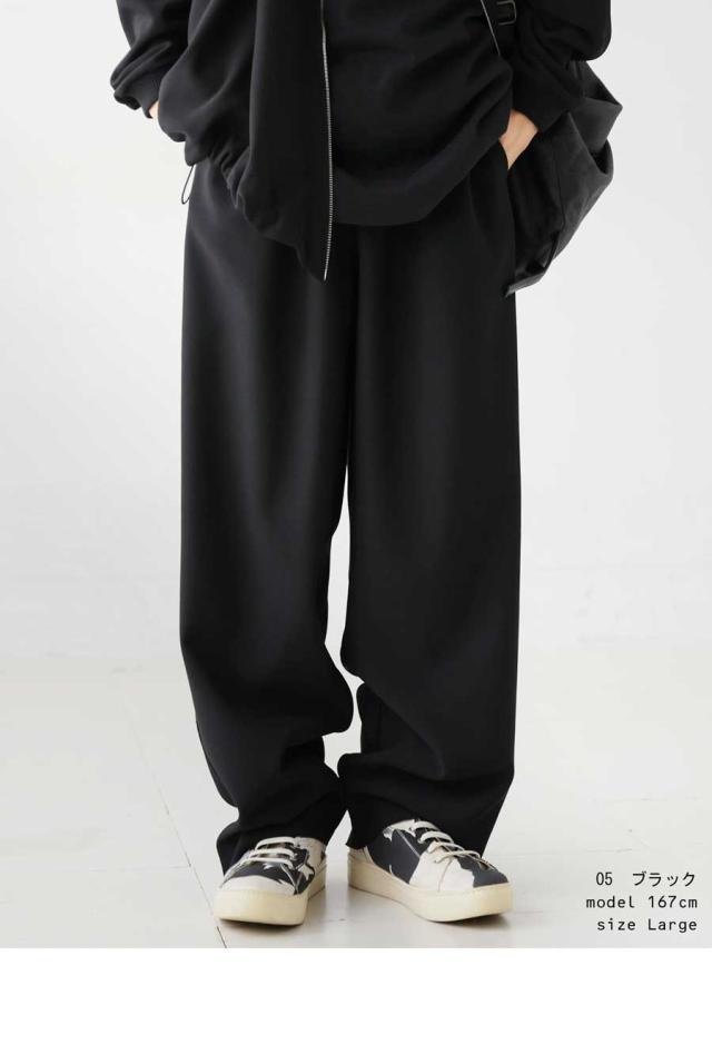 zy-00134z 無地 ボトムス テーパードシルエット ワイド ゆったり 体型カバー ウエストゴム ポケット付き セルフカット 長ズボン ストレッチ シンプル オフィスカジュアル サイズ調整