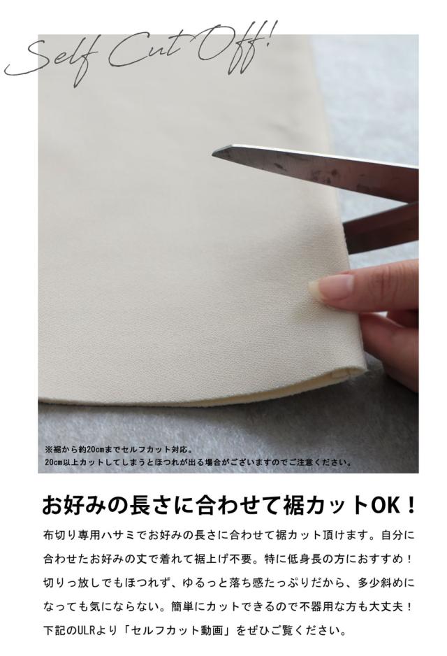 裾はセルフカット可能なので、自分の好みに合わせて丈感を調整でき、ジャストなシルエットが手に入ります。