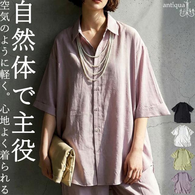 シャツ レディース 無地 トップス 半袖 羽織り 送料無料・(50)メール便可 春新作