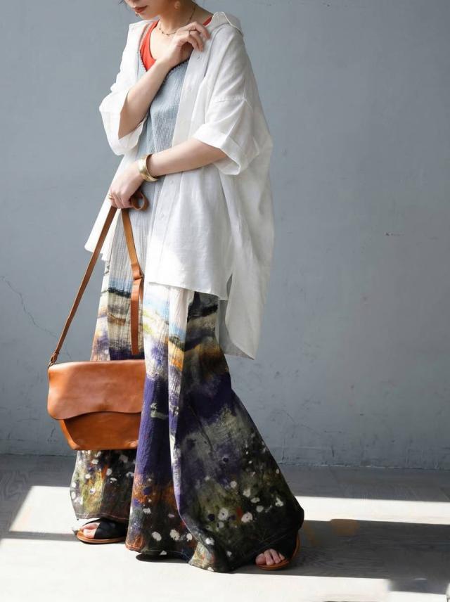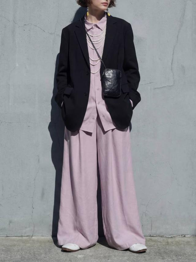 レーヨン混素材で軽やかに着られ、通勤や旅行など様々なシーンに対応します。