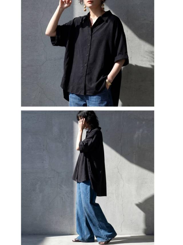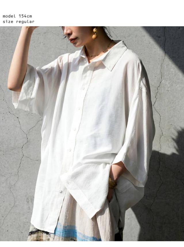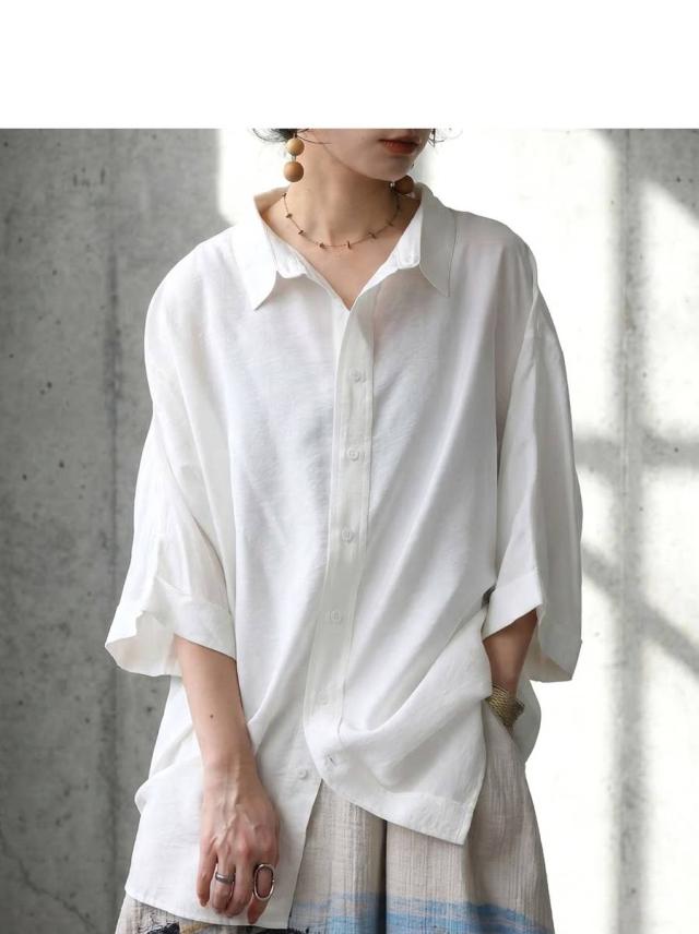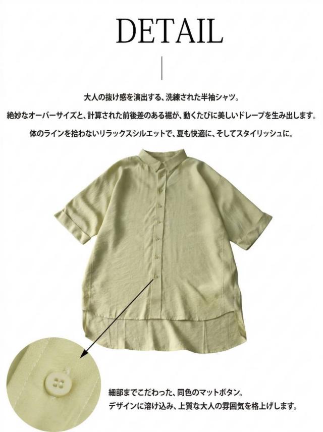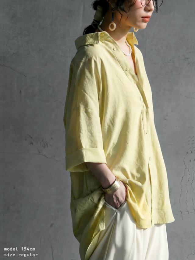 zk-00228 ブラウス 前開き ボタン レギュラーカラー オーバーサイズ 体型カバー ゆったり リラックス シンプル カジュアル レーヨン混 ナチュラル きれいめ 前後差 ユニセックス