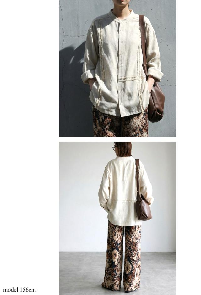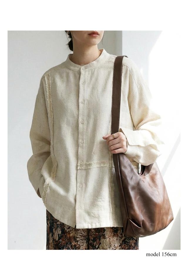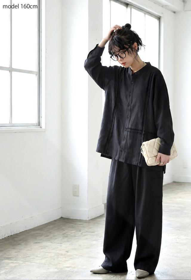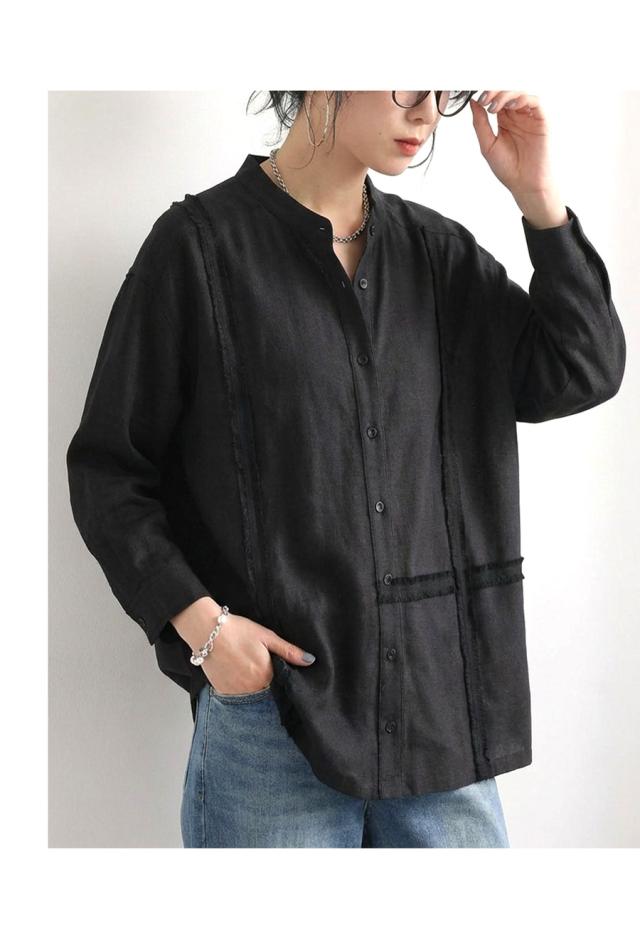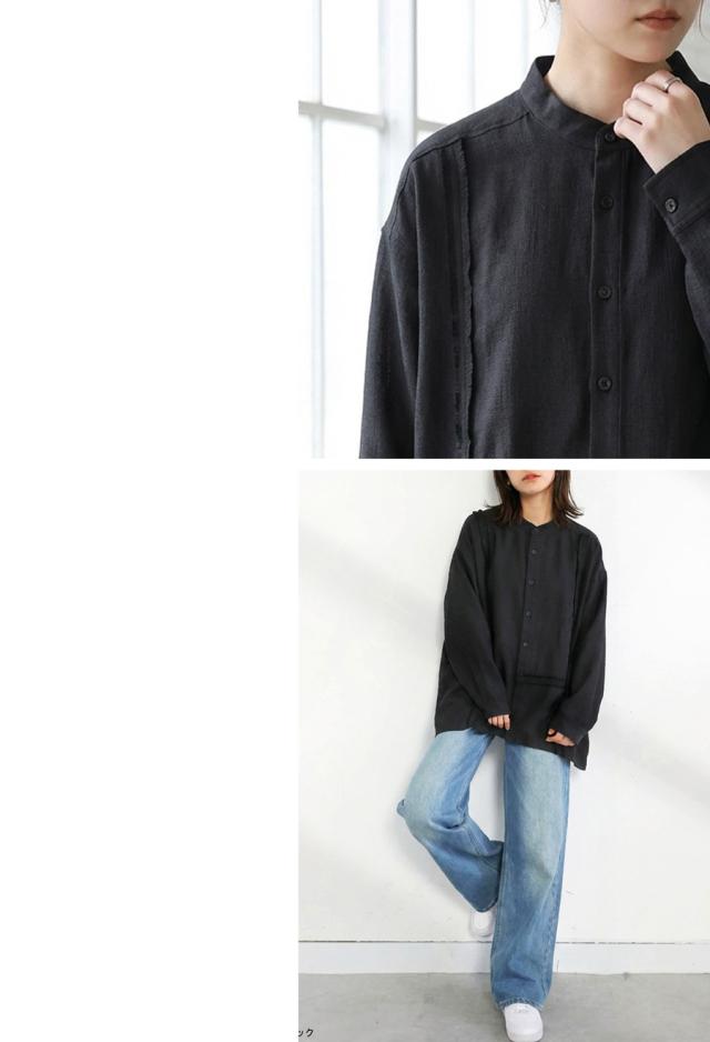 zk-00233 ブラウス スタンドカラー バンドカラー ゆったり 体型カバー おしゃれ シンプル ナチュラル 抜け感 カジュアル ライン テープ 羽織り 前開き ユニセックス セットアップ