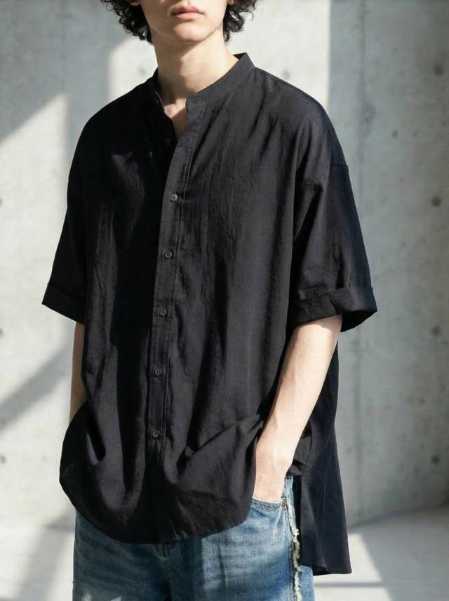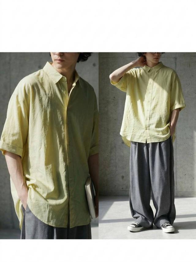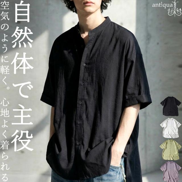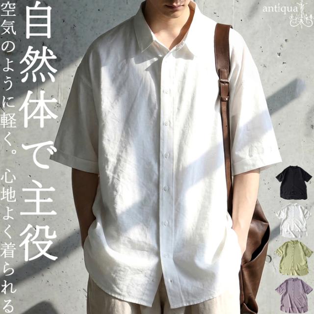 シャツ メンズ 無地 トップス 半袖 羽織り 送料無料・(50)メール便可 春新作