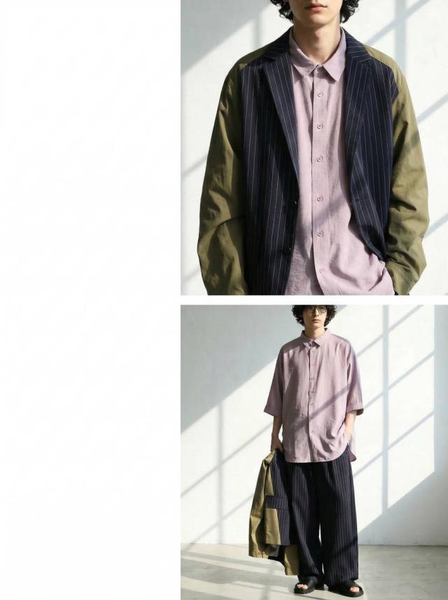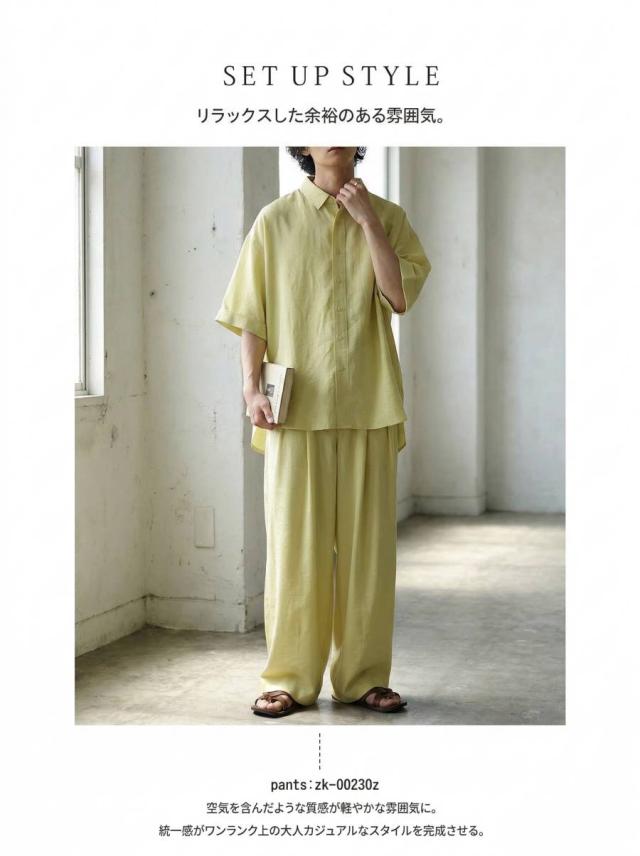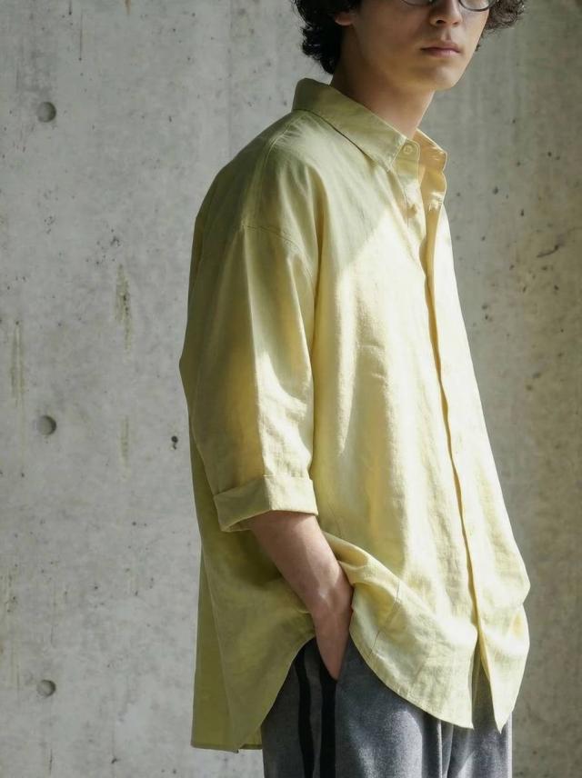 ネックラインはレギュラーカラーでシンプルにまとめつつ清潔感のある印象に。