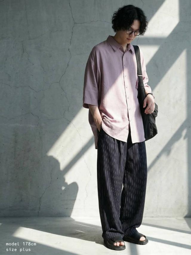 形状はオーバーサイズでゆったりとしたシルエットが体型カバーにも貢献します。