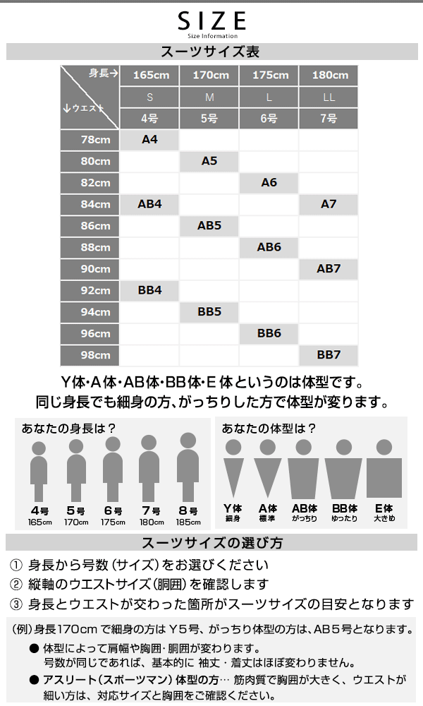 AB体4号(S) AB体5号(M) AB体6号(L) AB体7号(LL)