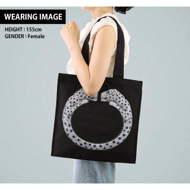 カルティエ トートバッグ メンズ レディース ブランド Cartier V&A エキシビジョン トートバッグ パンテールバングル パンサーバングル ヴィクトリア&アルバート博物館 カルティエ展 限定トートバッグ 170069 ブラック バッグ