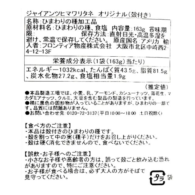 ジャイアンツ サンフラワーシード ひまわりの種 オリジナル 塩味 163g×12袋 【ケース販売】 GIANTS ひまわり シャワー プロテイン