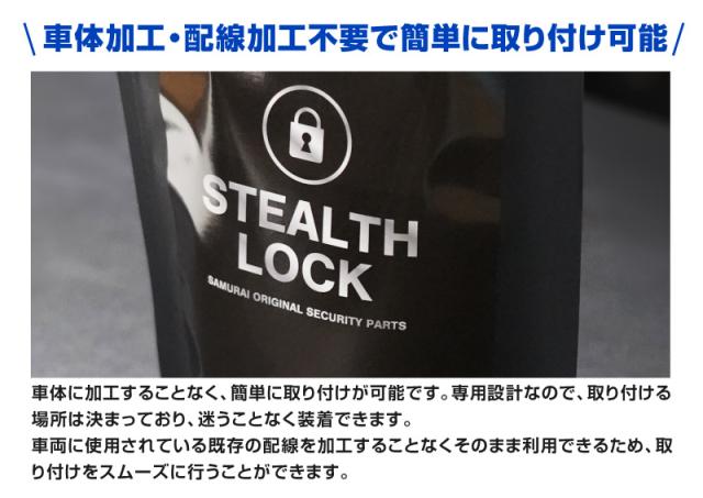 『STEALTH LOCK』はサムライプロデュース独自開発の自動車盗難防止アイテムです。