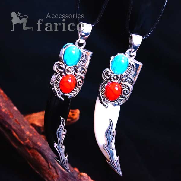 熊 爪 ベアクロー 樹脂 赤 水色 珊瑚 ターコイズ 民族風 メンズ ペンダント ネックレス 【 ブラック / ホワイト 】