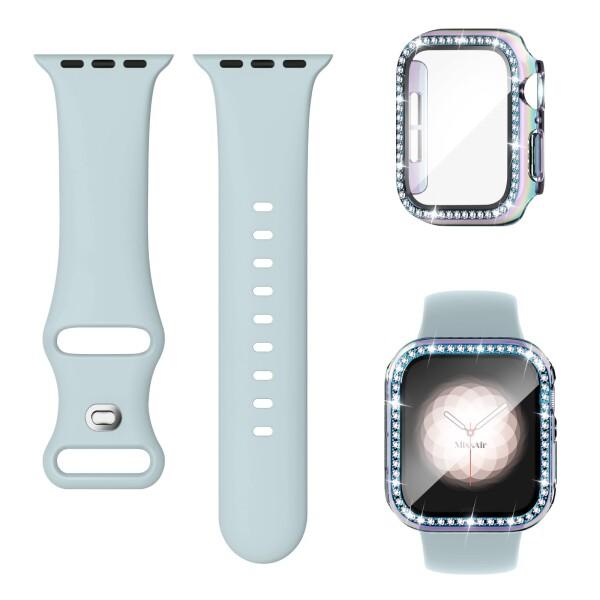 (Missair) コンパチブル Apple Watch バンド シリコン アップルウォッチ バンド キラキラ カバー付き 互換用のApple Watch ベルトとケース 一体型 全面保護 ダイヤモンド オシャレ レディース Serie