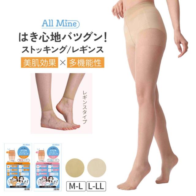 All Mine オールマイン 袴田彩会さんプロデュース! ゴルフ ストッキング スポーツ レギンス UVカット 紫外線対策 伝線しにくい 吸水速乾 抗菌防臭 美脚 ストレッチ 蒸れにくい ベージュ 普段使い 通勤 パンティ部立体 マチ付き つま先補強 日本製【レガルト】