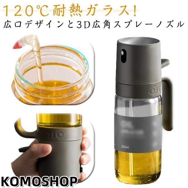 オイルポット オイルスプレー 120° 耐熱ガラス オイルスプレーボトル 250ml 油ポット 霧吹き 料理用 油スプレー スプレーボトル 料理用 油さし 詰め替え容器 透明 漏れ防止 調理用オイルミスター 噴霧器ボトル 耐久性