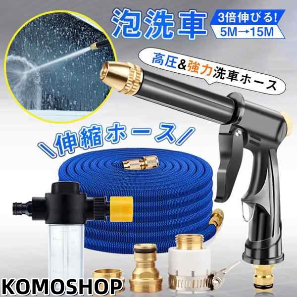 伸びるホース 高圧 15m 水道ホース 伸縮 ホース 泡 洗車 洗剤 タンク 軽量 散水 水圧 5M-15M ガーデニング 掃除 丈夫 耐久性 園芸