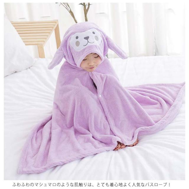 | 子供用吸水性に優れたフード付きバスタオル。 赤ちゃんと子供のいるご家庭ではバスローブはお風呂上がりにとっても役立つ便利なグッズ! 色も豊富にあるので、性別や好みに応じて色を選んでください。 ふわふわのマシュマロのような肌触りは、とても着心地よく人気なバスローブ! 水分の吸収性や肌触りも抜群で敏感肌のベビーちゃんにも安心して、お風呂上がりだけではなくルームウェア・羽織るガウンとしても着られます | |