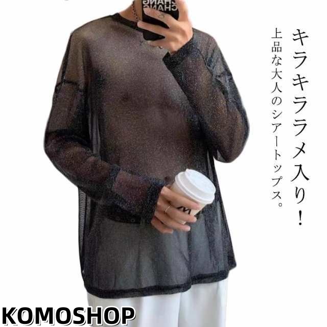 ラメ系 シアートップス メンズ シースルー 透け セクシー Tシャツ 長袖 トップス 重ね着 ロンT おしゃれ 透け 春夏 薄手 カジュアル 透け感 韓国ファッション シアーブラウス シアーシャツ キラキラ ダンスウェア M L XL 2XL 3XL 4XL