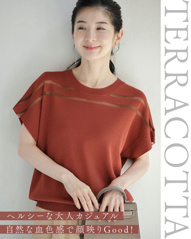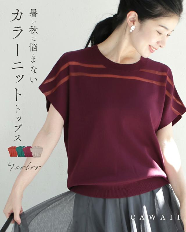 fth00001 新作 新着 再入荷 CAWAII FRENCHPAVE フレンチパヴェ エレガント ベーシック カジュアル 可愛い かわいい カワイイ おしゃれ オシャレ お洒落 個性 個性的 定番 ベーシック 大人かわいい 大人可愛い 上品 女性らしい デザイン スタンダード ナチュラル きれいめ キレイめ シンプル フェミニン レディース レディースファッション 大人 ママ ミセス 30代 40代 50代 60代 暑い秋に悩まない カラーニット トップス 半袖 S M L XL 小さめ 小さいサイズ 低身長 痩せ ほっそり 小柄 細身 ゆったり サイズ展開 薄手 春 夏 春服 春物 夏服 夏物 秋 秋服 秋物 軽量 楽ちん 楽チン ラクラク 楽々 ラフ 伸縮 テラコッタ ベージュ ボルドー グリーン 普段着 日常使い ヘビロテ オフィス 会社 通勤 OL おでかけ 大人女子 カラバリ