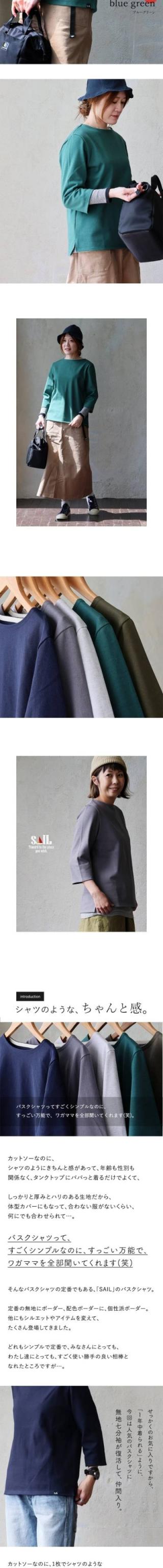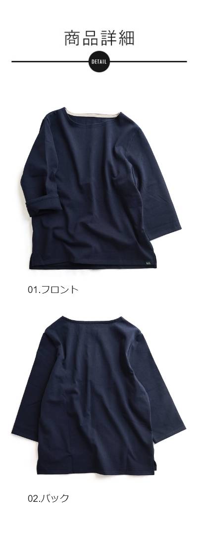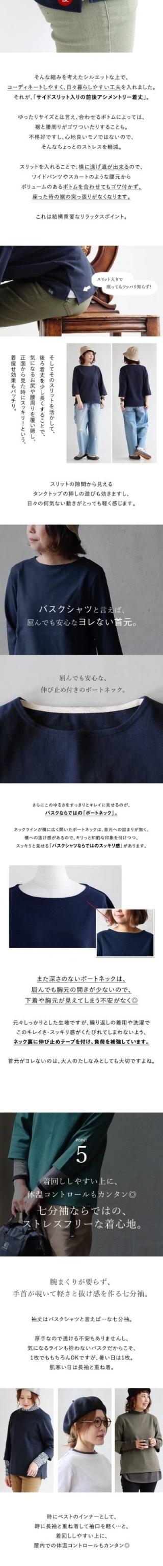 バスクシャツ 七分袖 カットソー レディース トップス 日本製 しっかり 柔らか コットン 綿100% 無地 ボートネック バスク ネイビー 紺 大人 カジュアル 重ね着 ロンT ロングTEEシャツ サイドスリット 7分袖 大きいサイズ 秋 パティ SAIL セイル