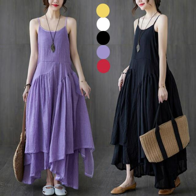 キャミワンピース ロングワンピース リネン混ワンピース リネン 綿麻 レディース きれいめ ノースリーブワンピース キャミソール ロング ワンピ ミモレ Aライン お出かけ マタニティ 妊婦 春 夏 L 2L