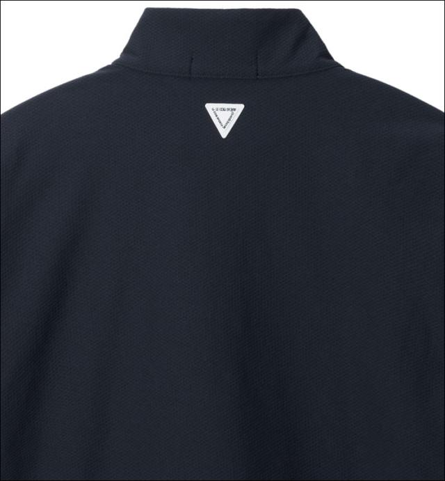 ■半袖ミドラーは、袖のスポーティな配色切替とロゴ入りファスナーが特徴。