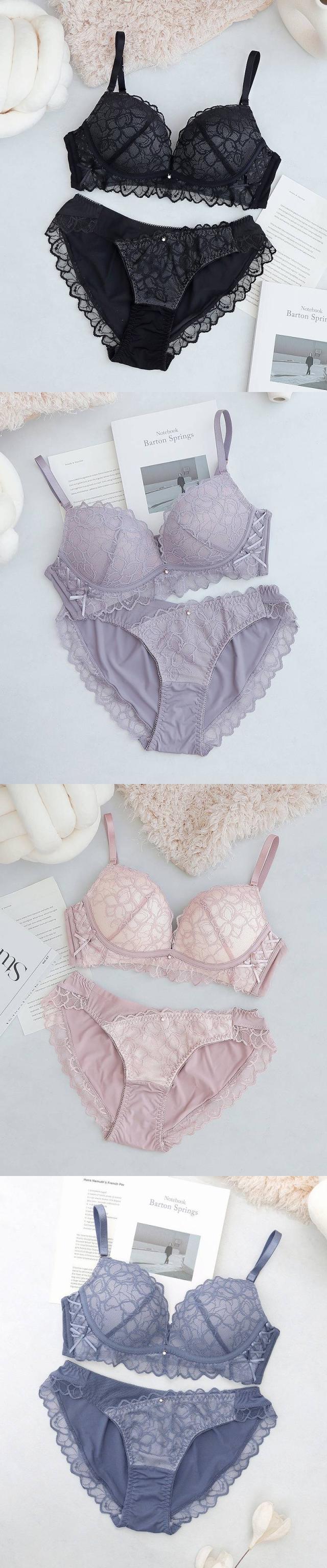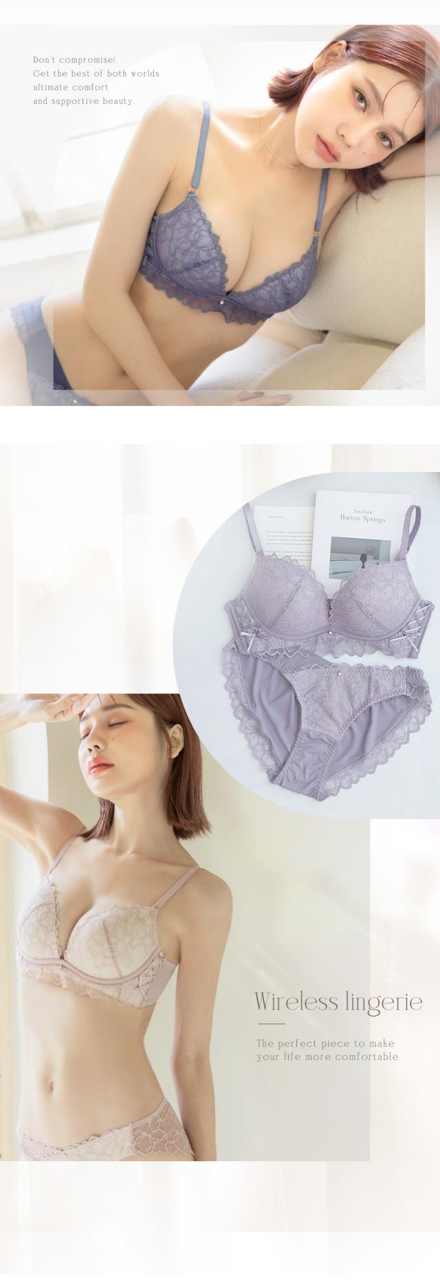 ブラジャー ショーツ ノンワイヤー 盛れる 盛りブラ レース かわいい 丸胸 スタイルアップ 谷間メイク ストレスフリー