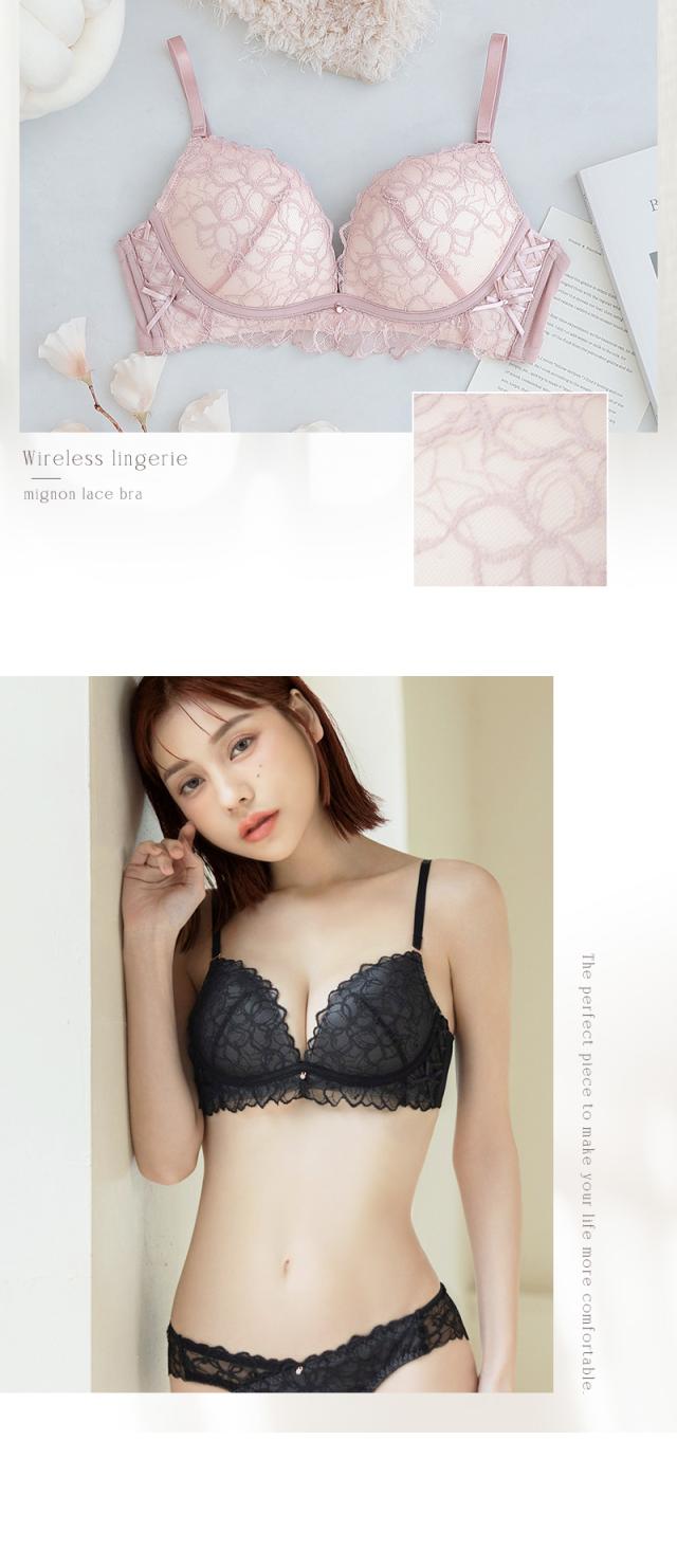 《エアランジュ》ミニョンレースブラ&ショーツ【グラマーサイズ】上下セット ノンワイヤー ブラ ショーツ セット 盛れる 盛りブラ ワイヤーなし 谷間 谷間メイク レース かわいい