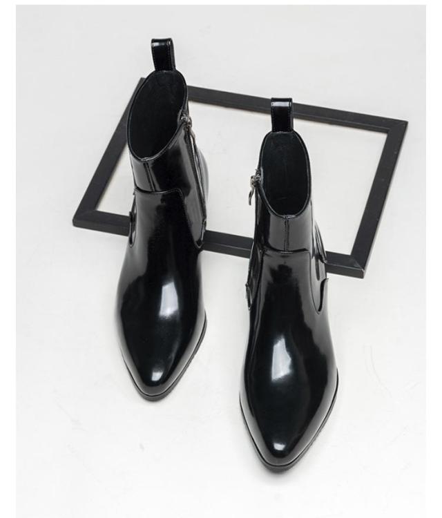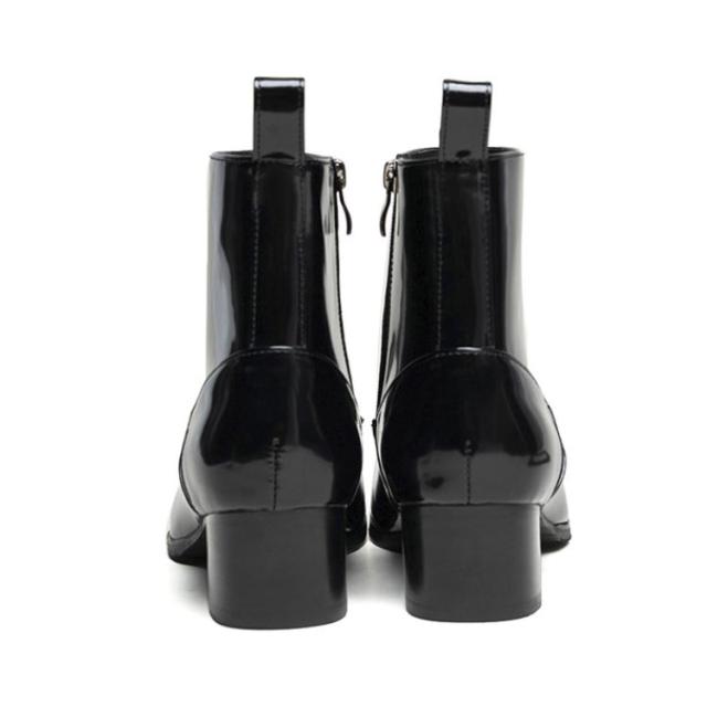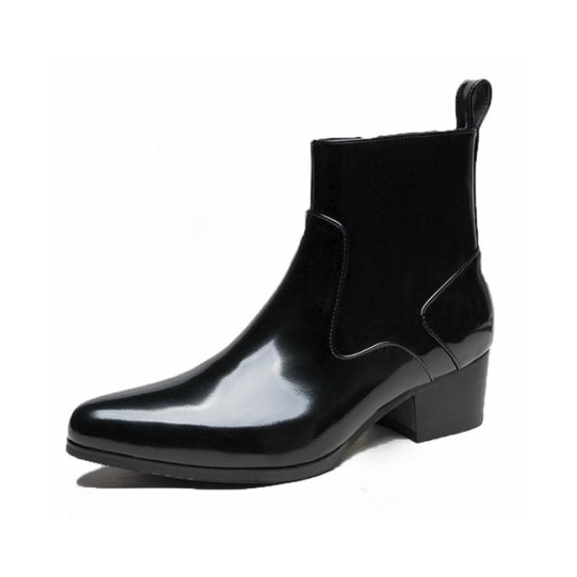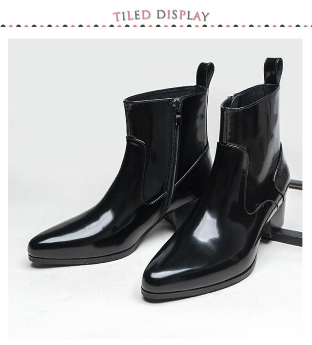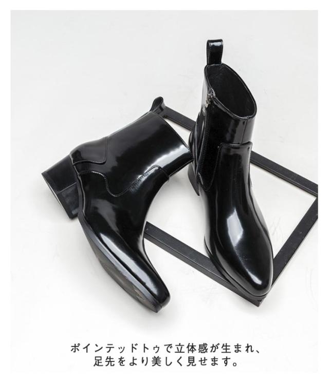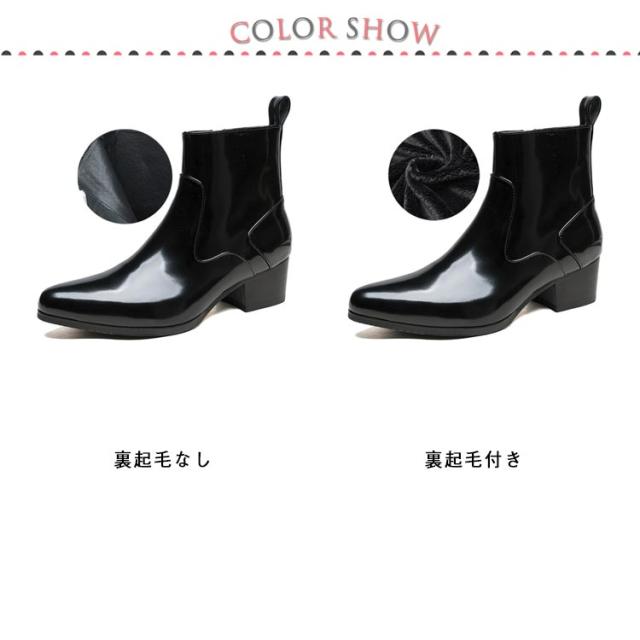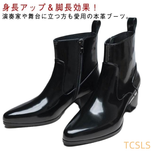 ブーツ メンズ ヒール 高め 本革 革靴 身長アップ 5cmヒール ドレスシューズ ドレスブーツ ホストブーツ ポインテッドトゥ ローヒール ブラック ヒールブーツ パーティー お兄系 渋谷系 モード系 裏起毛付き 裏起毛なし 23-27cm