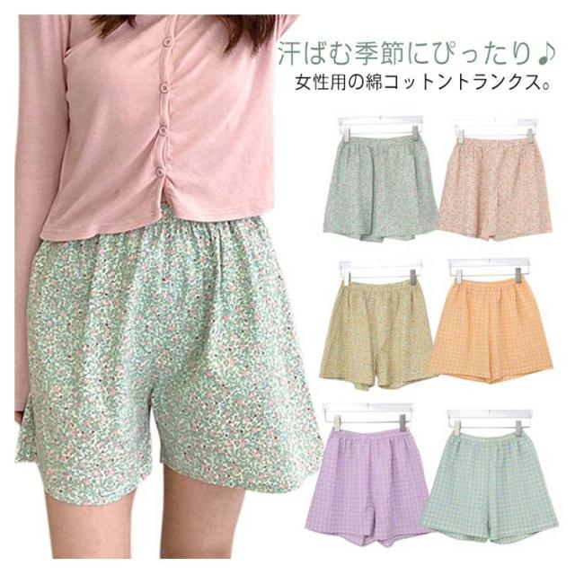 | 汗ばむ季節にぴったり♪女性用の綿コットントランクス。 締めつけ感なく、肌に優しいコットン素材、通気性に優れており、ムレにくく、サラサラとした肌触りの女性用トランクス。 足の付け根を締めつけないので、黒ずみやむくみが気になる方にもおすすめ。 湯上がり時さっと着て、極上なリラックスをGET。 オシャレなデザイン、おうち時間のルームパンツとしてもお勧めです。 | |