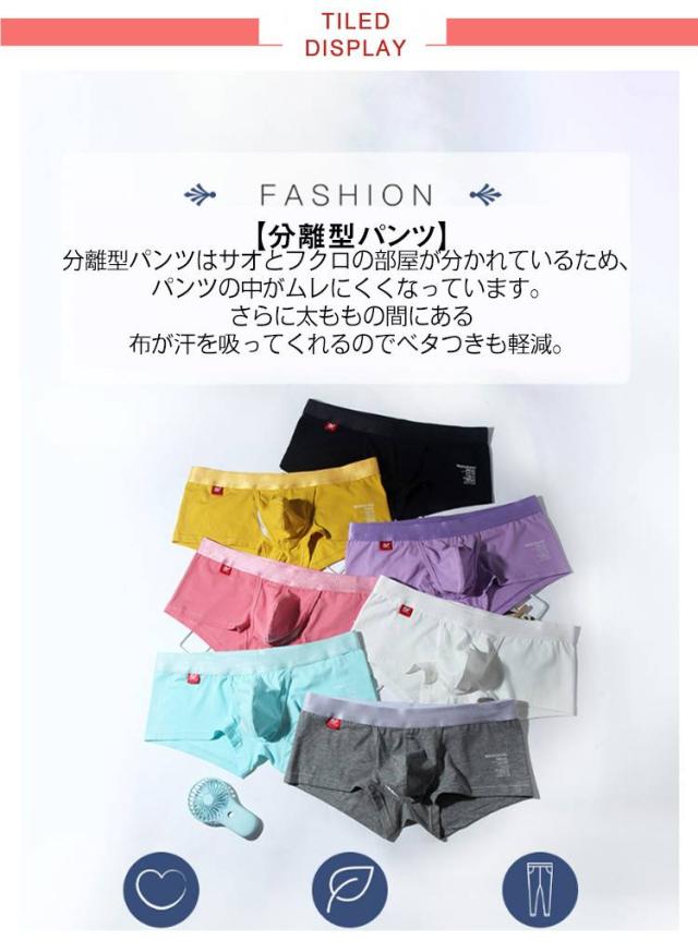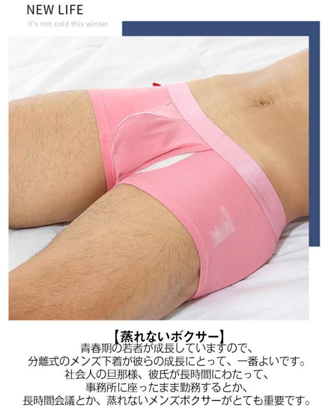 | 【分離型パンツ】分離型パンツはサオとフクロの部屋が分かれているため、パンツの中がムレにくくなっています。さらに太ももの間にある布が汗を吸ってくれるのでベタつきも軽減。 【股間爽やか】ヒップに食い込んでしまう問題を解決するために、伸縮性とフィット感たっぷりメンズ下着を勧めます。一体化成形で、恥ずかしい食い込むことがありません。股間ポケットが付いたので、腿に張り付かない超快適です。 【気になる匂いも軽減できる】通気性がいいので匂いがこもりにくくなるので、気になる匂いを軽減する効果も期待できます。分離型パンツは機能だけでなく、履き心地もバツグンです。吸汗速乾の生地と絶妙なホールド感で快適な一日を過ごせます。 【蒸れないボクサー】青春期の若者が成長していますので、分離式のメンズ下着が彼らの成長にとって、一番よいです。社会人の旦那様、彼氏が長時間にわたって、事務所に座ったまま勤務するとか、長時間会議とか、蒸れないメンズボクサーがとても重要です。 | |