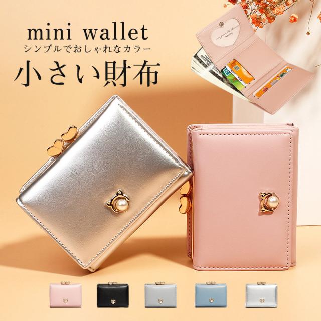 ミニ財布 小銭入れ 三つ折り財布 ミニウォレット レディース ハート がま口 猫 カード 収納 コンパクト おしゃれ かわいい 通