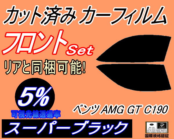 フロント (s) ベンツ AMG GT C190 (5%) カット済みカーフィルム 運転席 助手席 三角窓 左右セット スモークフィルム フロントドア 車種別 スモーク 車種専用 成形 フイルム 日よけ 窓 ガラス ウインドウ 紫外線 UVカット
