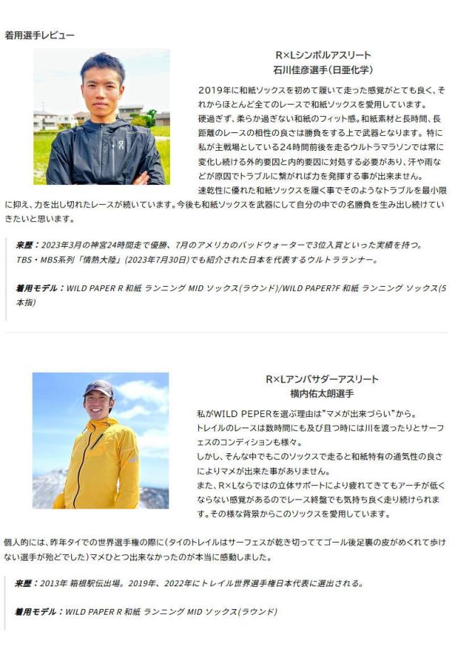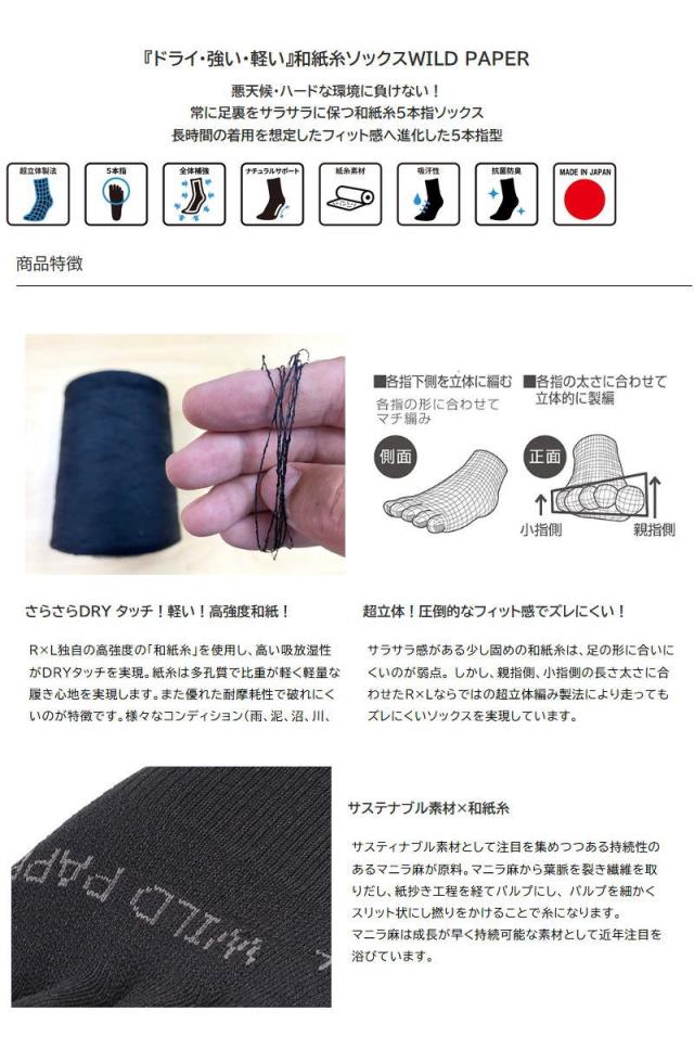 営業日即日発送 R×L アールエル WILD PAPER F 和紙 ランニング ソックス JPS5001 日本製 5本指タイプ ウルトラマラソン ランナー 石川佳彦 ゆうパケット対応