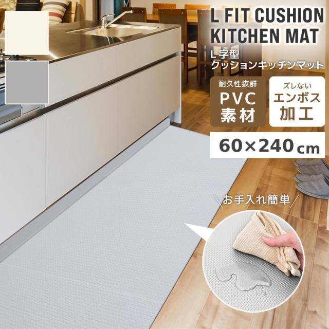 キッチンマット 拭ける 240 L型 60×240 厚手 8mm 折り目付き 滑らない 低反発 クッション マット コーナー L字折り曲げ L型 隙間 カバー 耐熱温度 100℃ エンボス PVC 防水 高耐久 おしゃれ シンプル キッチン 台所 折り曲げ 滑り止め カーペット 送料無料