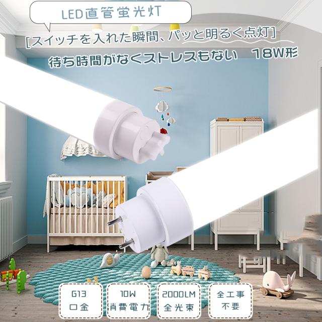 【兼用型 電気工事不要】LED蛍光灯 18W形 直管 500mm LED 蛍光灯 消費電力10W 高輝度2000lm G13口金 LED直管蛍光灯 両側給電 直管型 LED照明器具 LED蛍光灯器具 LED 蛍光灯 照明器具 天井 蛍光灯 LED 直管 直管LEDランプ 会社 家庭用 施設照明 店舗照明 PSE認証 2年保証