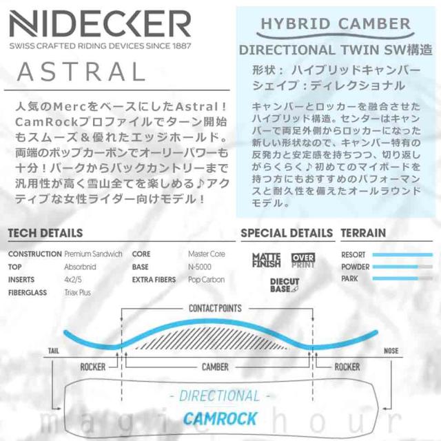 ◆ NIDECKER ナイデッカー スノーボード スノボー 板 単品 レディース 2026モデル ASTRAL アストラル ハイブリッド キャンバー Wロッカー ボード ◆