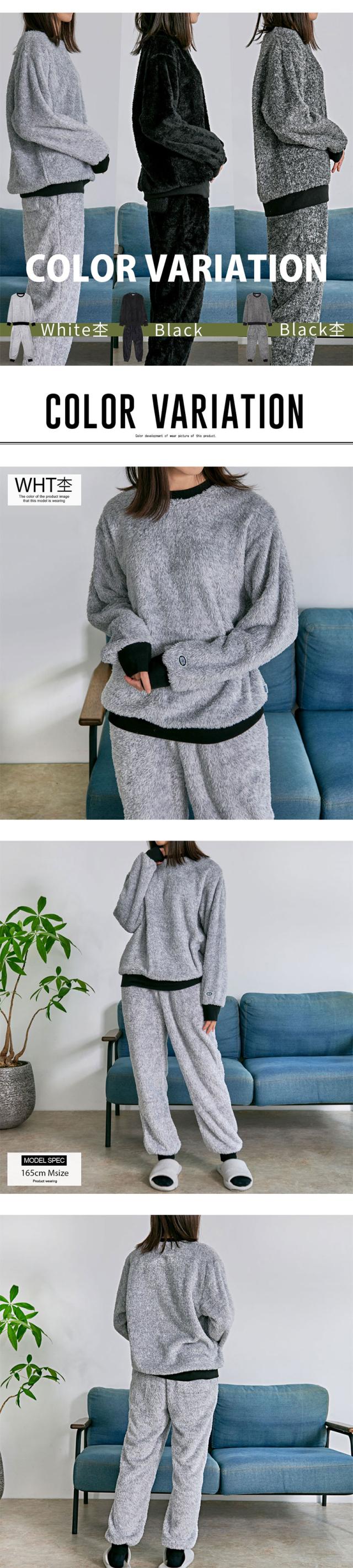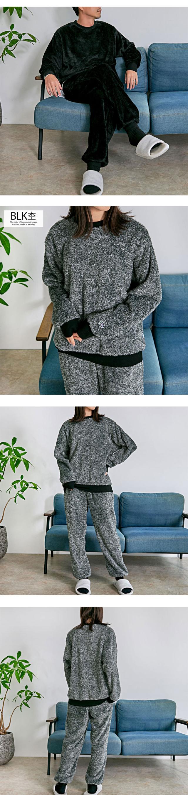 寒い季節を快適に過ごせる、ふんわり柔らかなボア素材を採用したルームウェアセットアップです。