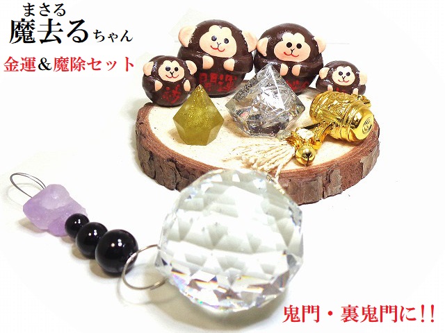 魔去るちゃん「金運&魔除」サンキャッチャーセット★鬼門・裏鬼門★ssSML★運気UPセット★風水セット★まさるちゃん★サル・さる・猿・申★魔除★水晶・オニキス・ラベンダーアメジスト★運気UP★金運・商売・生霊・悪霊★邪気邪念★パワーストーン★護符(霊符)