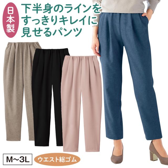 パンツ ズボン 日本製 eclaTstyle キレイ すっきり ゆったり 細く見える 足長効果 ウエストゴム タック 婦人服 ミセス シニア おしゃれ ファッション ピンク ベージュ ブラック ネイビー ブルー