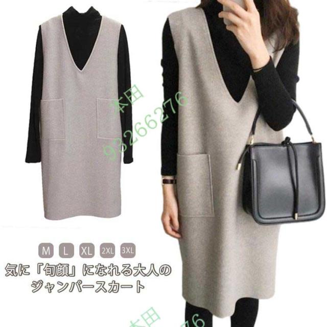 ワンピース ジャンパースカート 深めvネック ワンピース カジュアル ジャンパースカート レディース 冬 秋 春 フォーマル マタニティ 重ね着 レイ