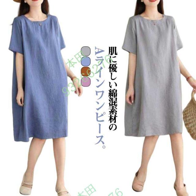 カットソーワンピース カットソーワンピース Aラインワンピース レディース ロングワンピース 通気性 無地 大きいサイズ 膝丈ワンピース 膝下 ロング