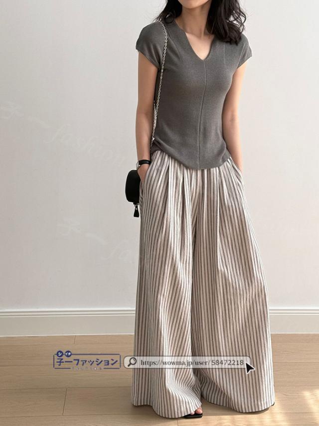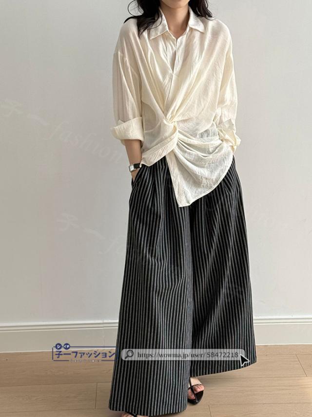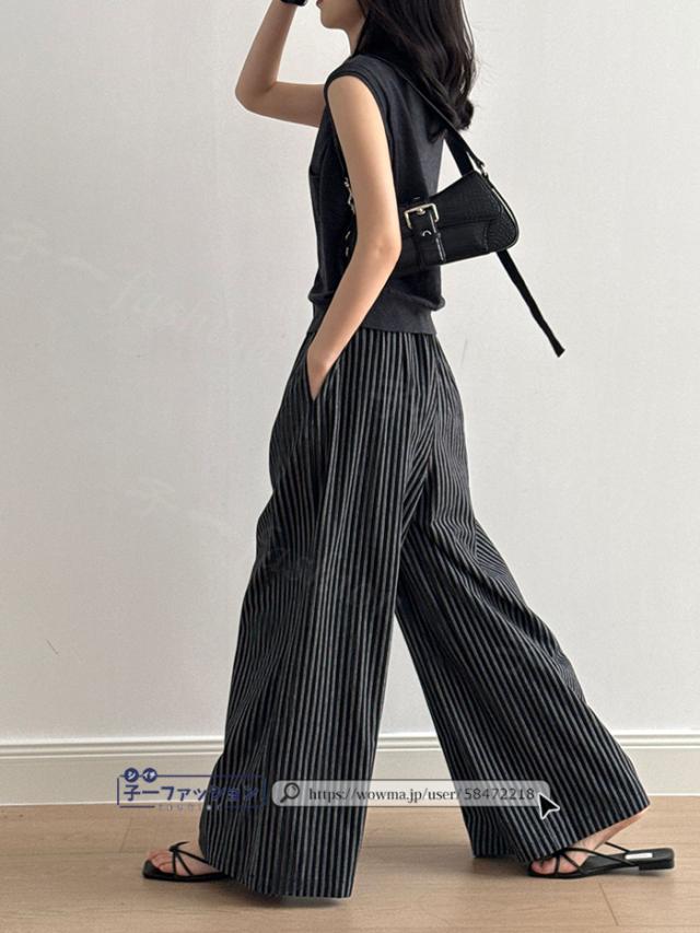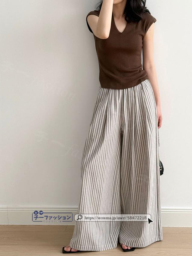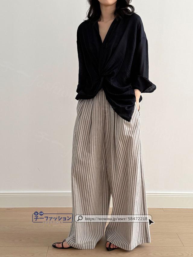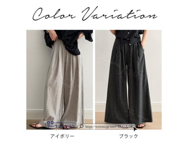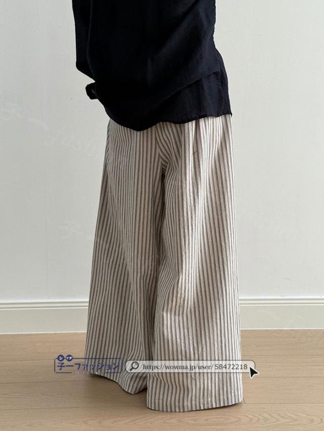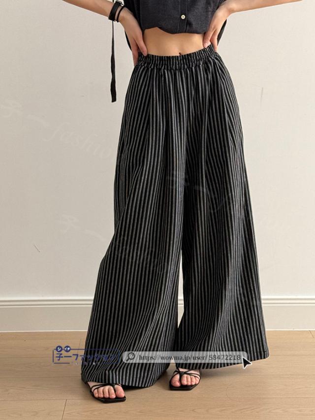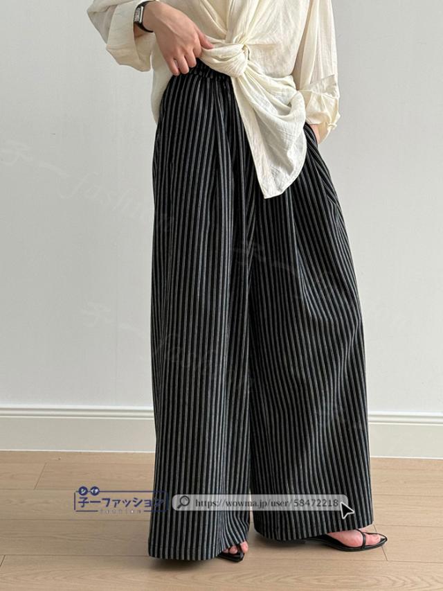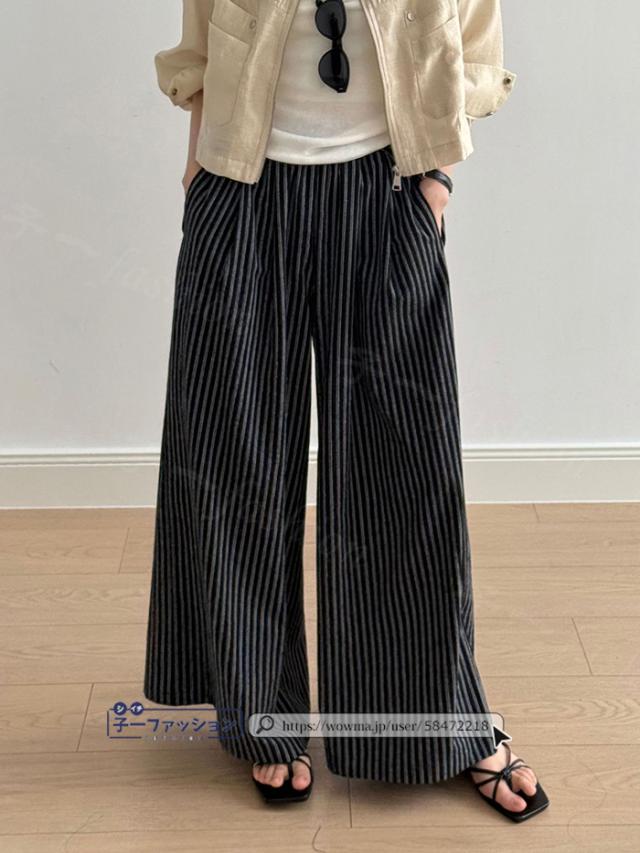 ワイドパンツ ストライプパンツ レディース 春新作 涼しい ストライプ ワイド パンツ 秋 春夏 ウエストゴム イージーパンツ ボトムス きれいめ ゆったり 大きいサイズ 体型カバー ストレートパンツ リラックスパンツ 秋冬 バレンタイン