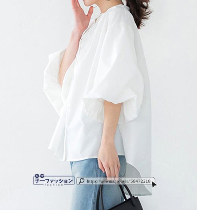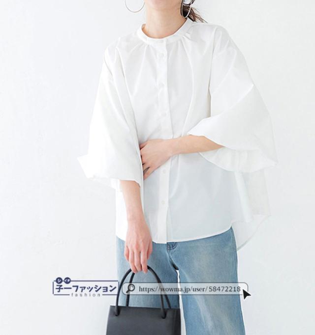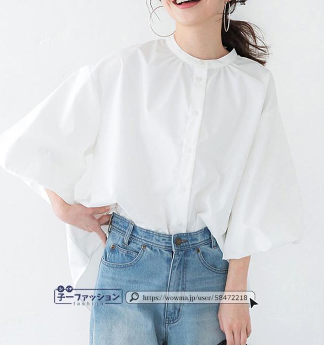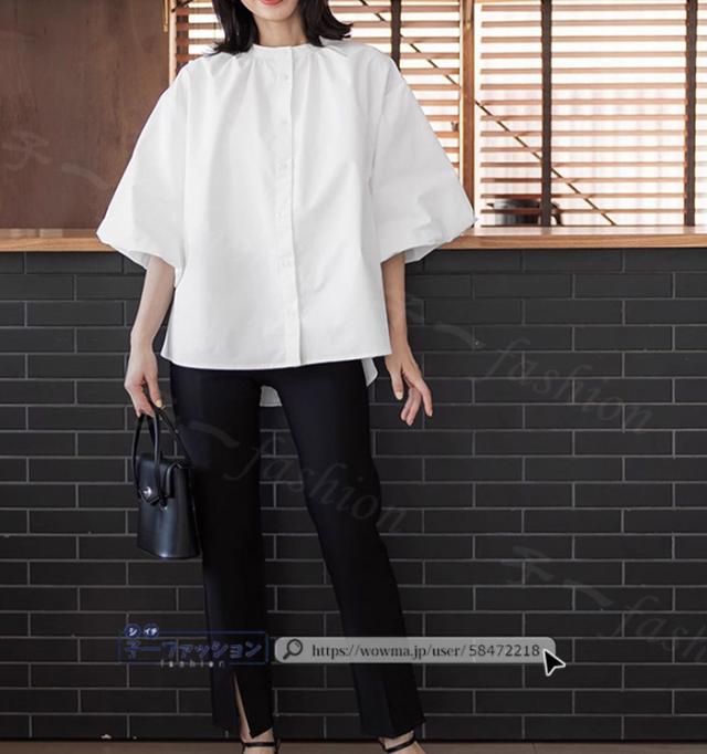 フロントタック ブラウス シャツ 冬新作 レディース パフスリーブ 袖ボリューム オフィス カジュアル 春 夏 長袖 お呼ばれ 通勤 OL きれいめ 華奢 黒 ホワイト ブラック ベージュ ブルー M/L フォーマル トップス 秋冬
