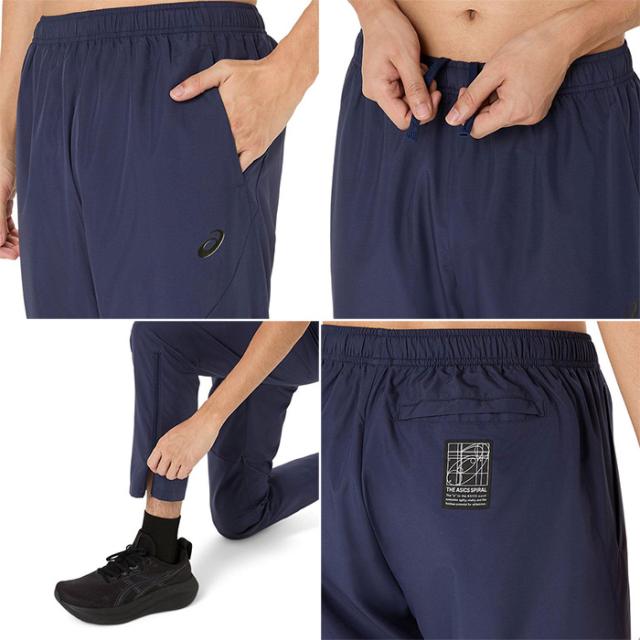 アシックス メンズ 裏メッシュウインドブレーカーパンツ フィットネス トレーニングウェア ボトムス 防風 裾ファスナー ブラック 黒 ブルー 青 送料無料 asics 2031F166