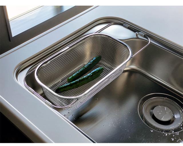 日本製 燕三条 シンクに渡せる 水切りかご すっきり暮らす水切りかご シンク渡し 食洗機対応 ステンレス 水切りカゴ バスケット コンパクト 頑丈(代引不可)【送料無料】
