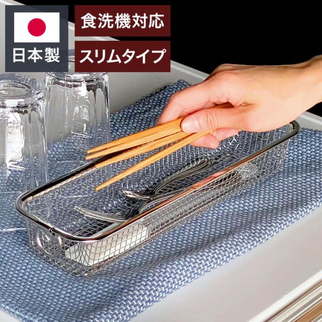 日本製 燕三条 すっきり暮らす水切りかご スリム カトラリー 箸 吸水マットに合わせて使える 食洗機対応 ステンレス 水切りカゴ バスケット(代引不可)【送料無料】
