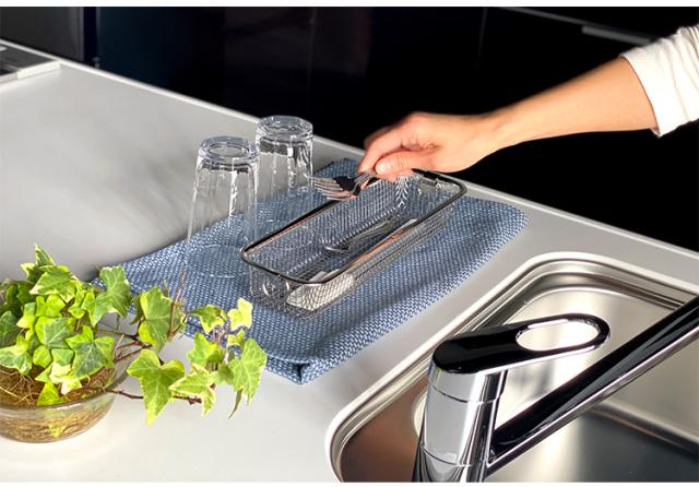 ・カトラリーやツール・パッキンなどの散らかりがちなアイテムを置くのにぴったりのスリム水切りです!