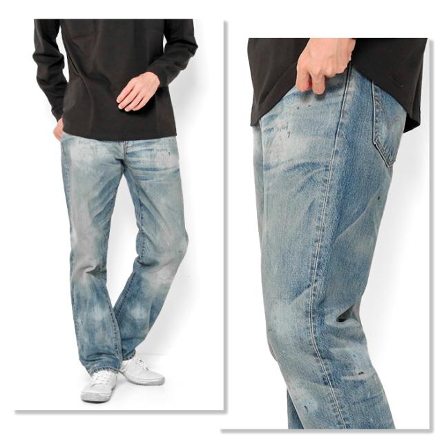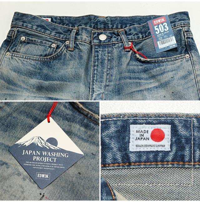 EDWIN エドウィン 503 E50323 レギュラーストレート ジーンズ 1036 中色ブルー メンズ デニムパンツ USED加工 ペイント カイハラデニム 国産 日本 綿100% リペア加工 13.25oz 通年 オールシーズン ズボン ロングパンツ ジーパン